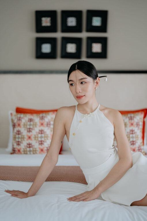 而镂空腰身与修长下摆,则加入现代剪裁的利落感。